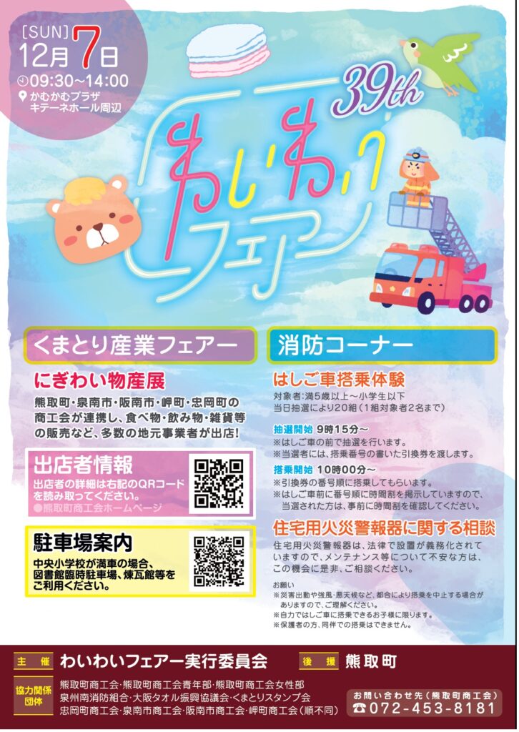 12月7日(日) 第39回わいわいフェアー&第14回熊取ふれあい農業祭を開催します!